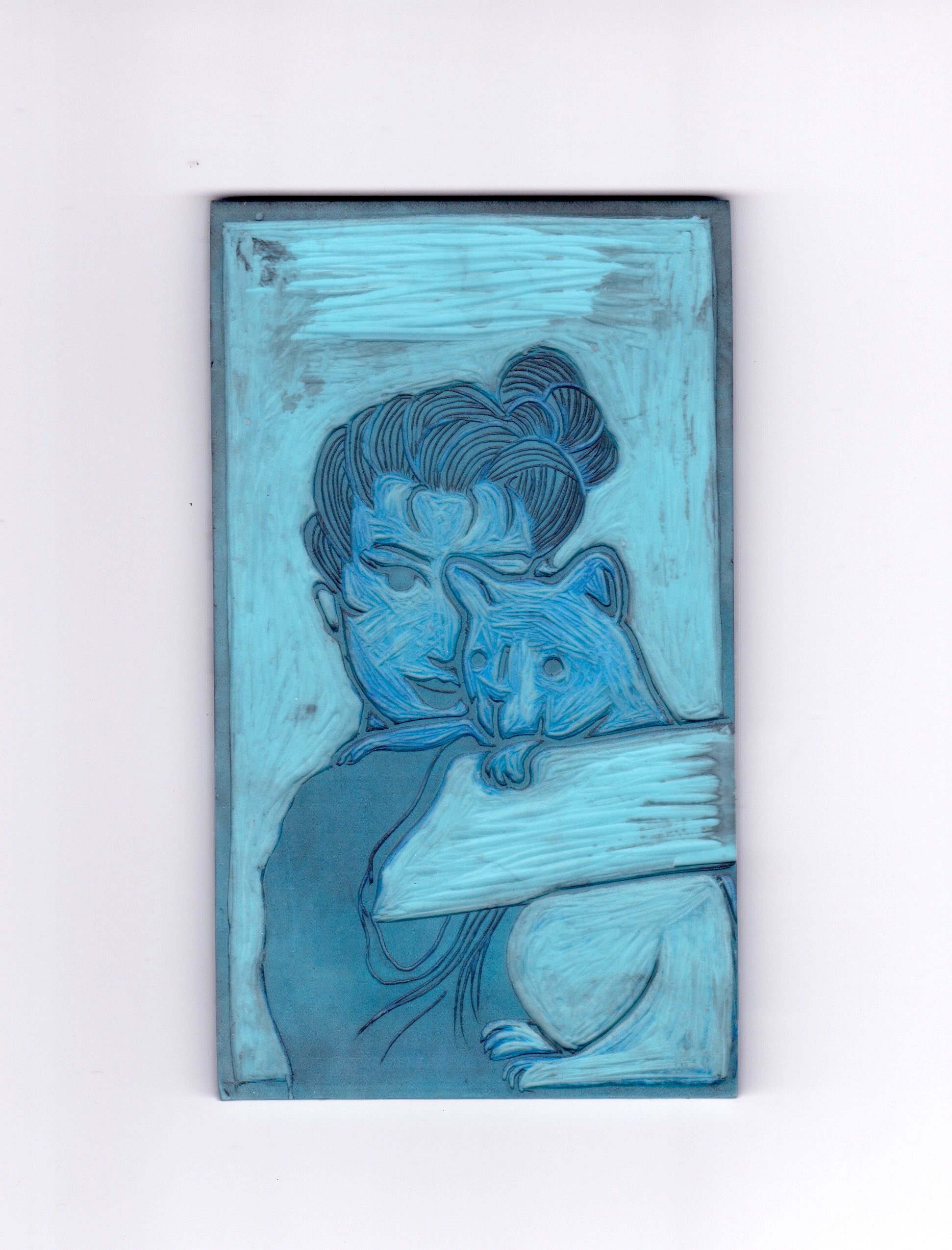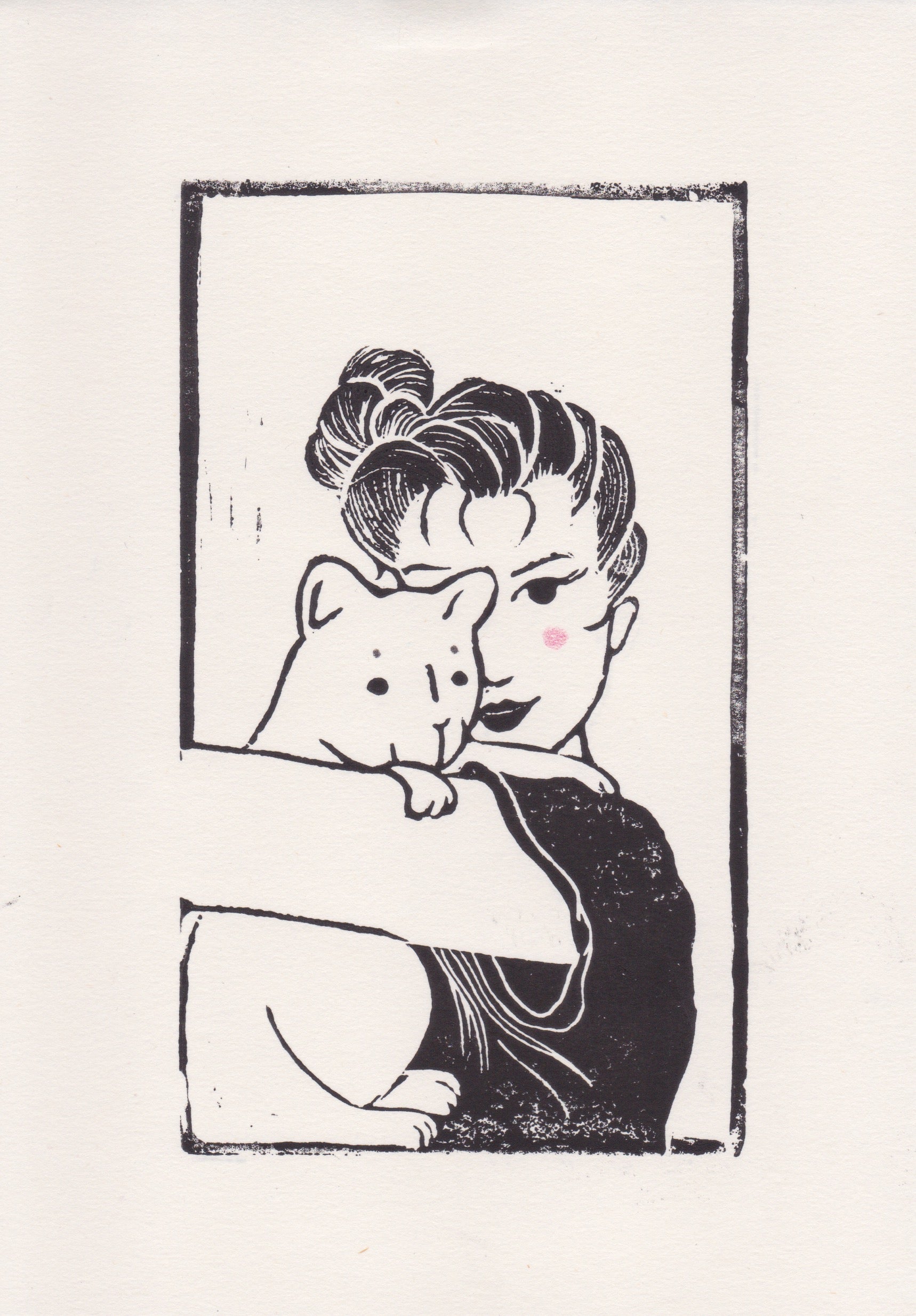 Linograbado a mano estampado en papel de bambú. Medidas: A5 (14,8x21cm)