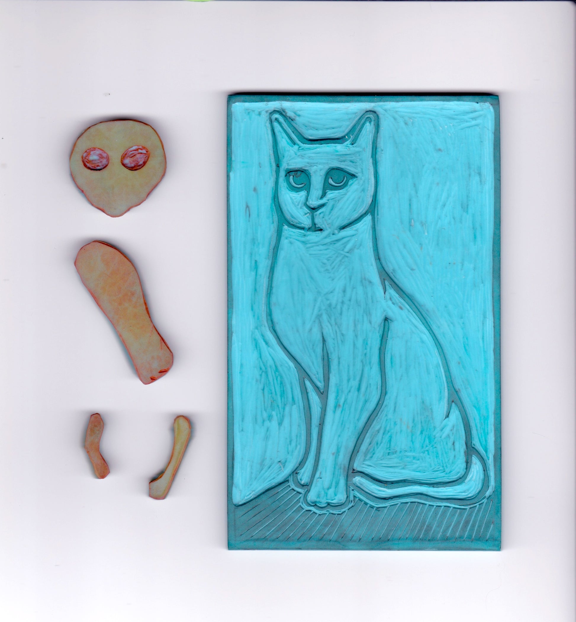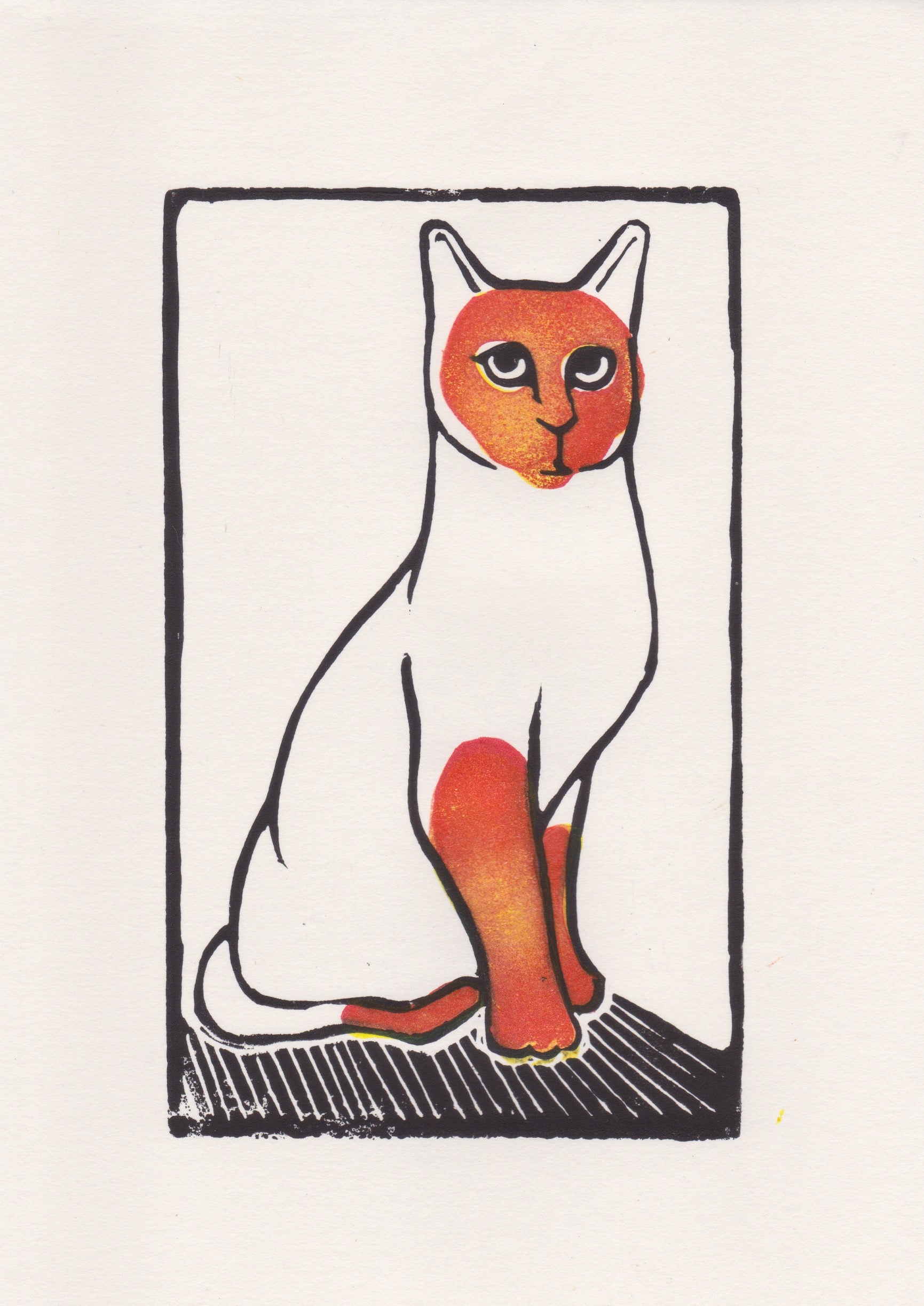Linograbado a mano estampado en papel de bambú. Medidas: A5 (14,8x21cm)
